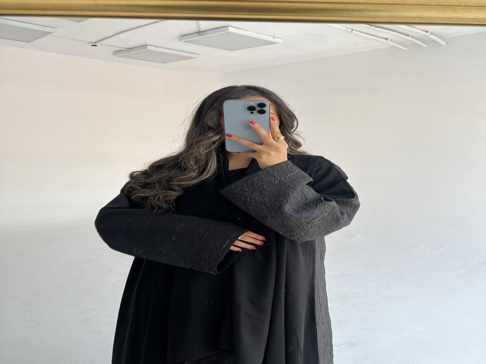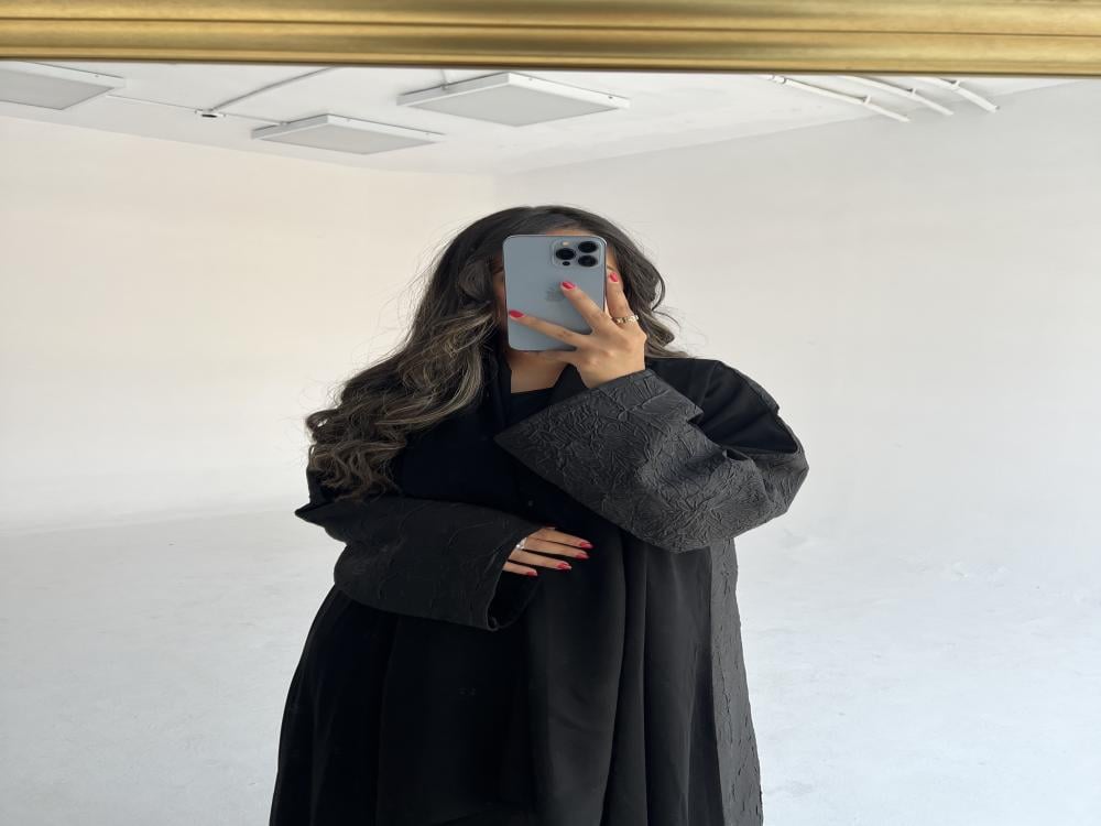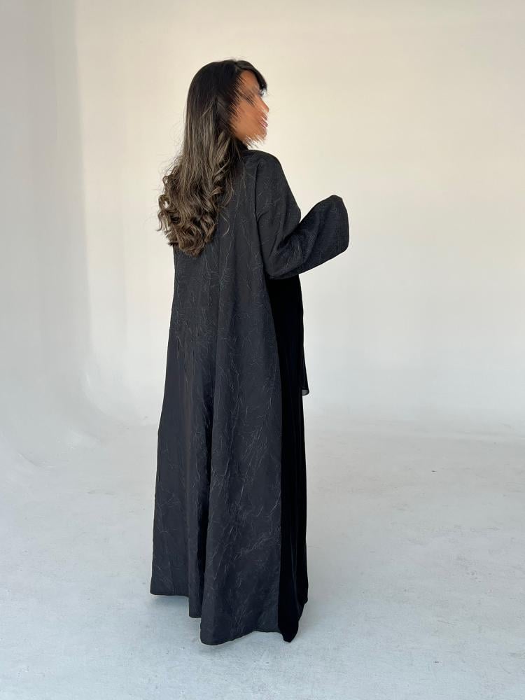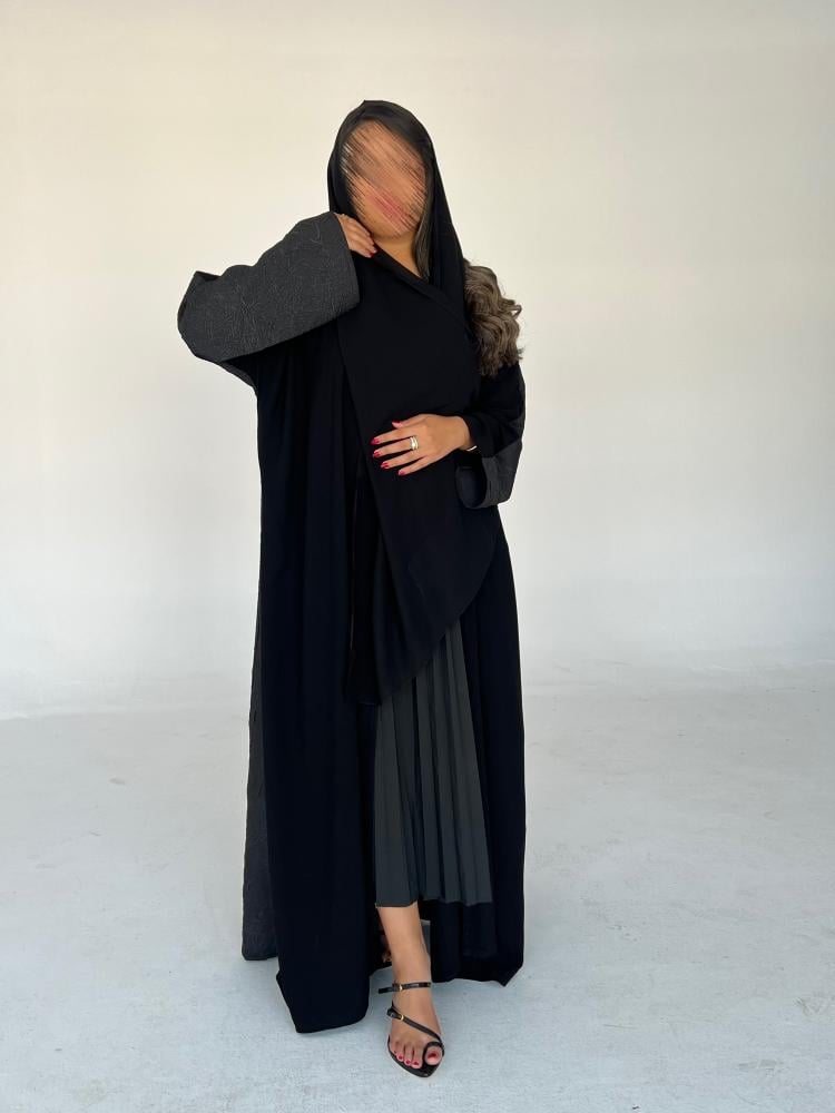 عباية كريب أمامي وجاكار خلفي نص كلوش مع طرحة أنيقة